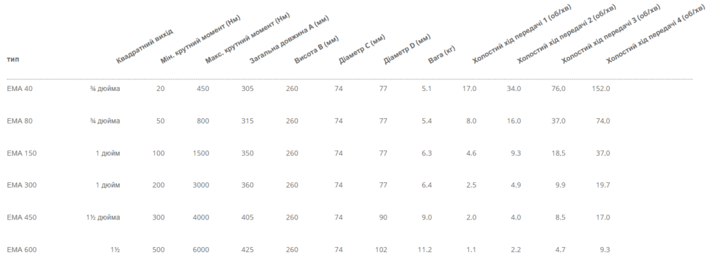 - Діапазон крутного моменту від 50 до 6000 Нм