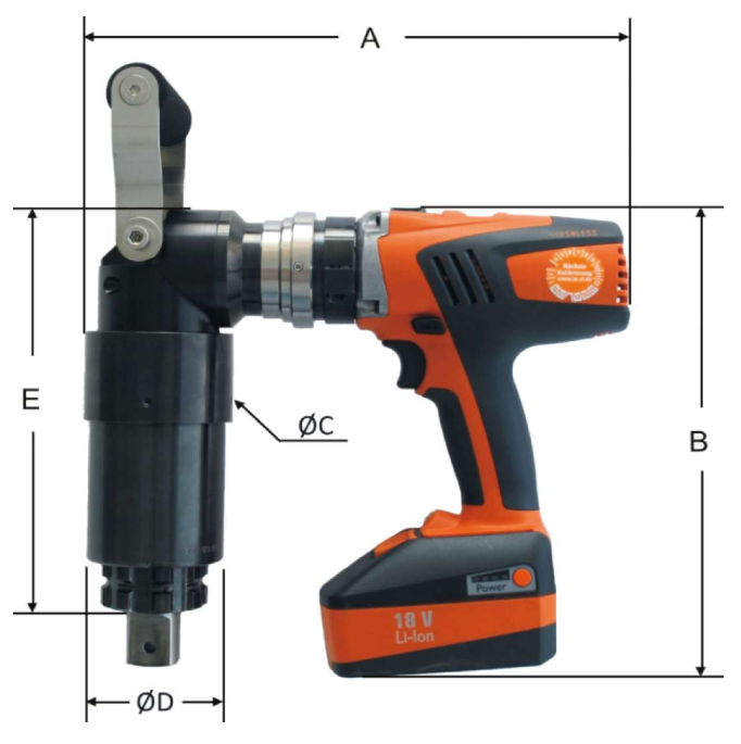 Акумуляторний динамометричний ГАЙКОВЕРТ, кутовий варіант