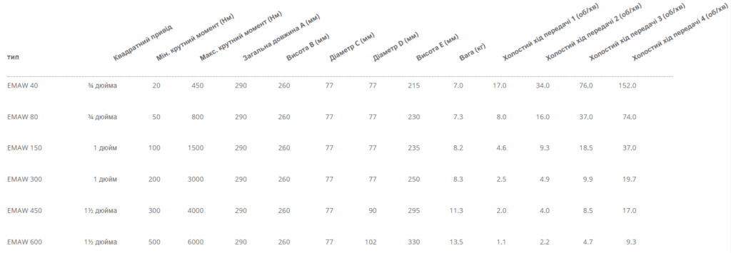 - Діапазон крутного моменту від 50 до 6000 Нм