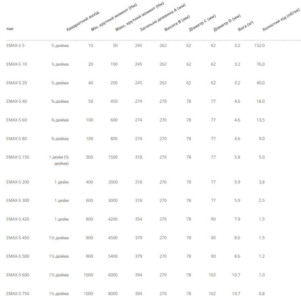 - Діапазон крутного моменту від 10 до 8000 Нм