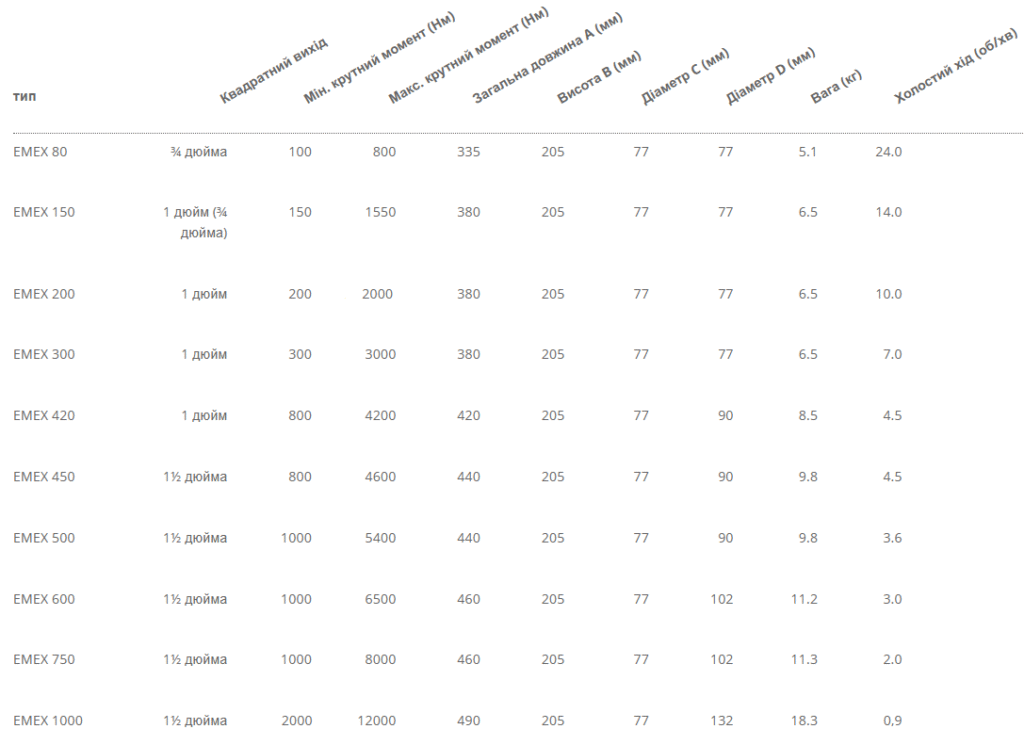 - Діапазон крутного моменту від 100 до 12 000 Нм