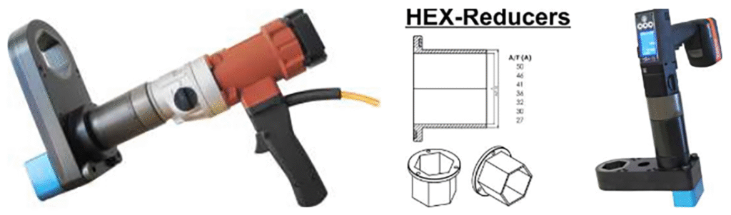 Бічні шестерні доступні з розмірами ключів 55, 60, 65 та 80 мм. Використання редукторів дозволяє використовувати ключі інших розмірів.